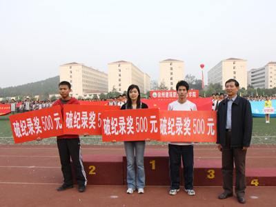 王旭善书记为破纪录运动员颁奖——建管系教师冯郁馨以