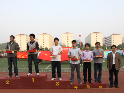 季翔副院长为获得体育风尚奖的系(院)颁奖——土木学院、建管系等四个系(院)获得体育道德风尚奖,钢构09—1班、造价09-1班等20个班级获得精神文明班级。