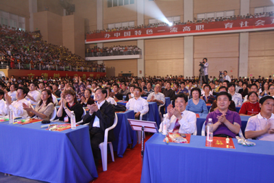 我校领导王旭善、袁洪志、吴光林以及各级领导机关有关部门领导、省内外兄弟院校领导、企事业单位领导、社会各界的来宾、朋友、徐州建院原校级老领导、离退休老教师、历届校友、在职教职员工和学生代表观看了演出。本场演出同步在操场上进行了现场直播,几千名师生观看了直播。