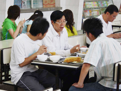 会上,任留钦对我校饮食服务工作所取得的成绩给予了充分肯定,同时对下一步工作,特别是新食堂投入使用之后,如何进一步提高服务档次,扩大经营范围等方面提出了更高的要求。他强调指出,在硬件设施不断得到改善的同时,饮食中心要切实加强各项管理工作,进一步提升服务水平和服务质量。同时他希望学生代表能够为学校饮食工作多建言献策。座谈会在和谐、坦诚、热烈的气氛中进行,取得了良好的效果。 会前,任留钦一行还到学生二食堂与学生共进早餐。