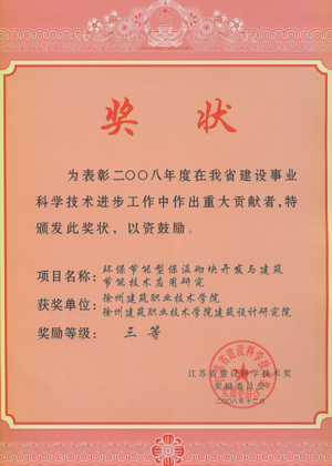 本项目主要针对苏北地区环保节能新型墙体材料相应的产品较少的现状,结合苏北地区资源、气候条件,因地制宜,并结合苏北地区粉煤灰、炉渣等资源丰富的条件,充分利用多元废旧材料(主要是粉煤灰、炉渣、废旧EPS颗粒等多元复合材料),通过大量的试验研究,研制出了力学和物理性能、热工性能均能达到国家和地方标准的,具有环保性、轻质量、性能优良、值得推广的环保节能型保温砌块。
