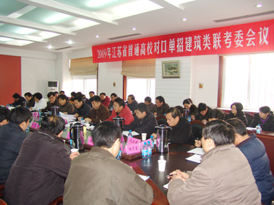 为总结回顾2008年对口单招建筑类专业考试工作,研讨部署2009年相关工作,1月5日,江苏省普通高校对口单招建筑类联考会第二次会议在我院召开。我院作为联考会主任单位主持会议召开,副主任委员单位常州工程职业技术学院和联考委员单位都派代表参加了会议,来自全省20多所开设建筑类专业的中等职业学校负责人应邀参加了会议。