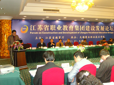 11月27日,由省教育厅主办,无锡商业职业技术学院承办的江苏省职教集团建设发展论坛在无锡举行。省教育厅副厅长丁晓昌出席论坛并讲话。论坛由省教育厅高教处处长王煌主持。