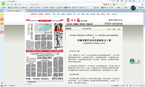 近日,教育部公布了50所“2014年度全国毕业生就业典型经验高校”,其中有4所教育部直属本科院校、29所省属本科院校、17所高职高专院校,江苏建筑职业技术学院名列其中。这是教育部在学校申报、省厅推荐、专家初选、社会调查与实地调研等环节遴选出来的。