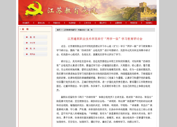 近日,江苏建筑职业技术学院党委理论学习中心组(扩大)举行“两学一做”学习教育集中学习研讨会,围绕“做‘四讲四有’合格党员”进行专题研讨。党委书记吴光林主持集中研讨会,校党委中心组成员,各党总支、直属党支部书记参加了学习。