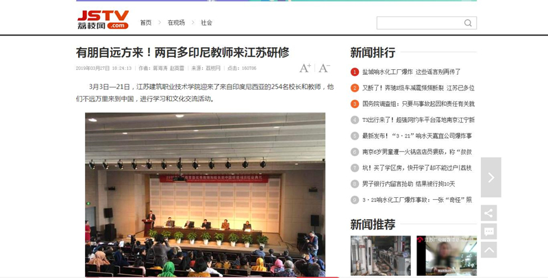 3月3日—21日,江苏建筑职业技术学院迎来了来自印度尼西亚的254名校长和教师,他们不远万里来到中国,进行学习和文化交流活动。