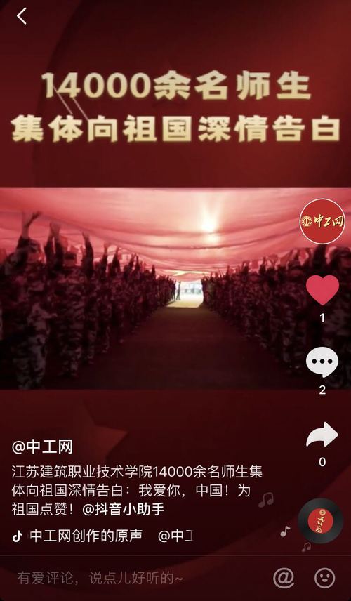 江苏建筑职业技术学院14000余名师生集体向祖国深情告白:我爱你,中国!为祖国点赞!@抖音小助手