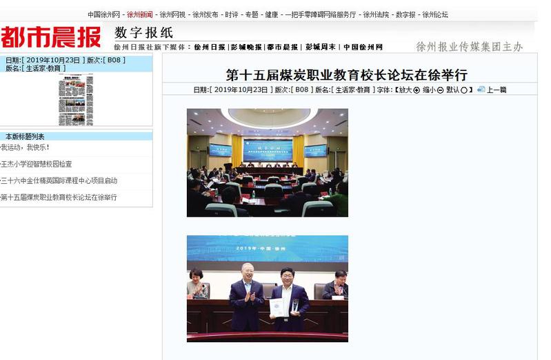 本报讯(记者 魏欣)2019年10月19日,中国煤炭教育协会第十五届职业教育校长论坛在江苏省徐州市江苏建筑职业技术学院召开,22所煤炭职业院校37名代表参加了会议。