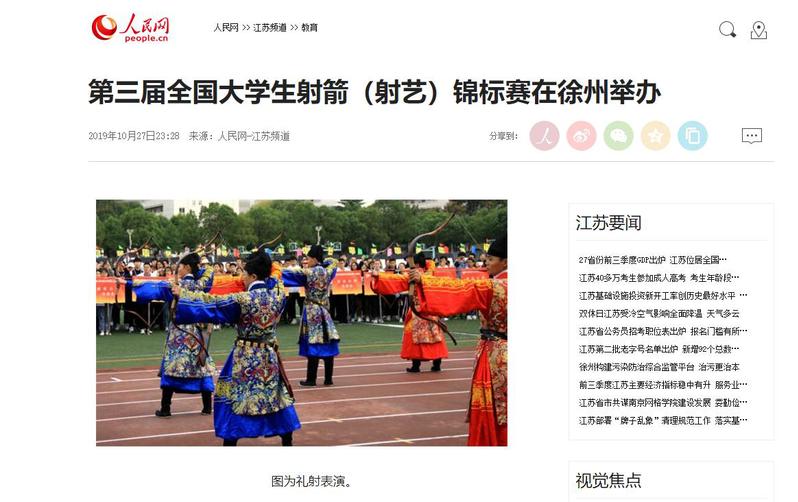 人民网徐州10月27日电 (闫峰)为期三天的第三届中国大学生射箭(射艺)锦标赛27日在江苏建筑职业技术学院落下帷幕。来自全国68所高校的大学生选手报名参赛,这也是该活动自创办以来,首次在985、211院校之外的高校举办。