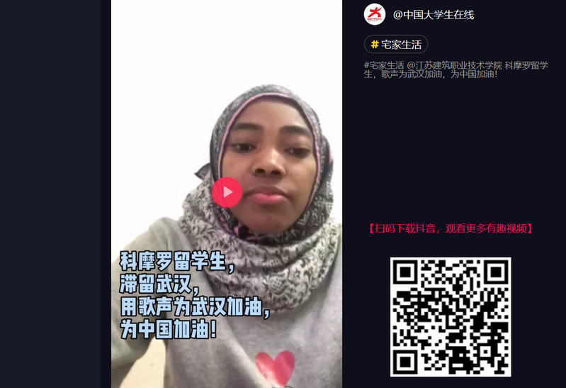 #宅家生活 @江苏建筑职业技术学院 科摩罗留学生,歌声为武汉加油,为中国加油!