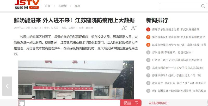 校园内的家属区封闭了,每天的鲜奶仍然保证供应;识别校外人员、居家隔离人员,大数据系统一刷见分晓。疫情期间,江苏建筑职业技术学院保卫部门,以人性化的服务助力严格管理,用信息技术提高管理效率,在确保疫情防控的同时,最大限度保障校园生活有序进行。