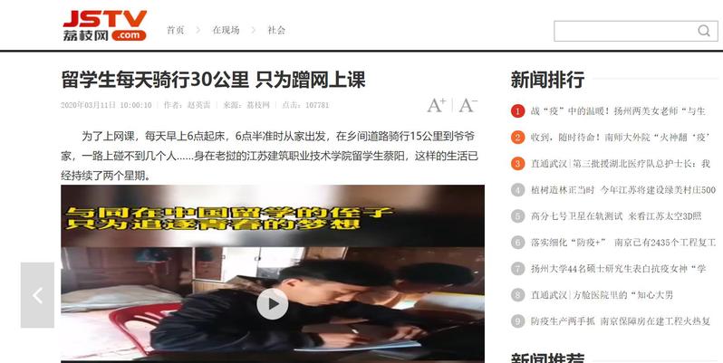 蔡阳所在的江苏建筑职业技术学院教务处表示,对于留学生的在线学习,学校原则上要求一视同仁,不管是进入专业的还是在语言阶段的,实在没有条件的,返校后再补课。