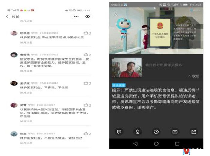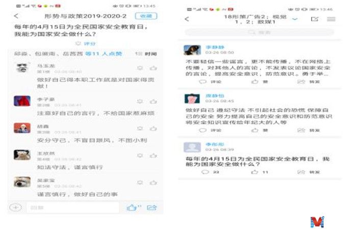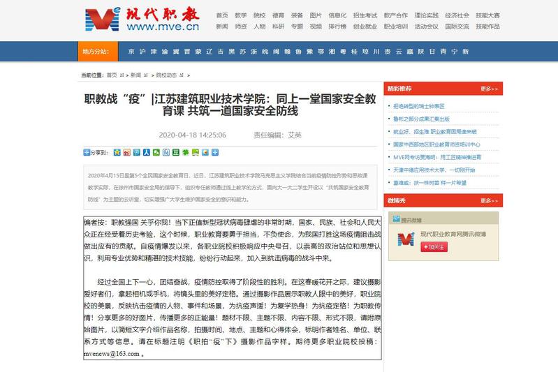 MVE网江苏讯(通讯员 崔宏利)2020年4月15日是第5个全民国家安全教育日,近日,江苏建筑职业技术学院马克思主义学院结合当前疫情防控形势和思政课教学实际,在徐州市国家安全局的指导下,组织专任教师通过线上教学的方式,面向大一大二学生开设以“共筑国家安全教育防线”为主题的云讲堂,切实增强广大学生维护国家安全的意识和能力。
