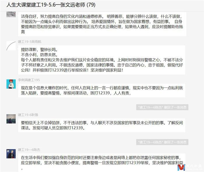 江苏建筑职业技术学院马克思主义学院结合思政课教学实际,认真开展“同上一堂国家安全教育课”活动,创新方式方法,以线上活动为主,通过观看视频、线上讲解、交流互动等形式进行学习,就出境旅行、日常学习科研、如何提高警惕、加强自律、避免落入境外间谍组织陷阱等相关主题,进行了讲解和互动交流。
