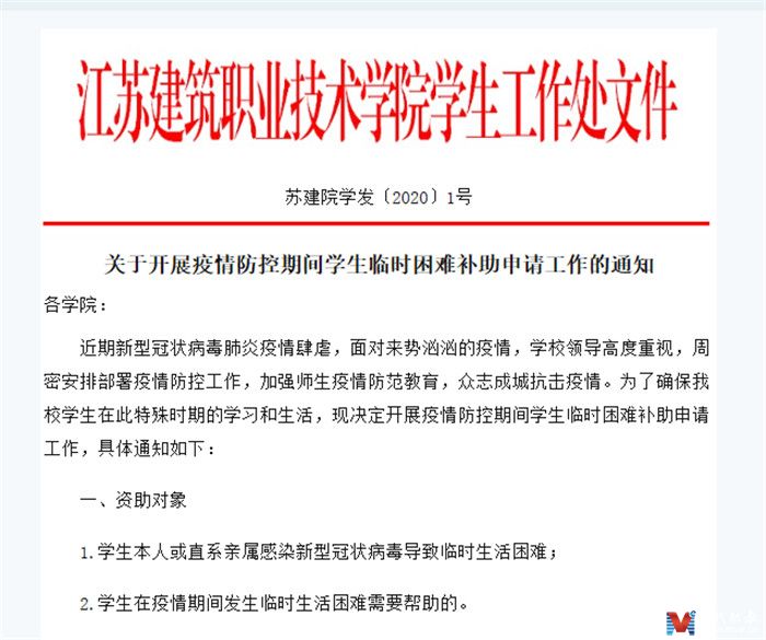 MVE网江苏讯(通讯员 朱敏)2020年一场突如其来的疫情席卷中国大地,这场疫情影响了千千万万的中国家庭,更影响了学校家庭经济困难学生的日常生活。疫情无情,爱未停止。越是危难时刻,越显责任担当,为了帮助家庭经济困难学生度过难关,学校实施了多项资助措施,保障家庭经济困难学生在疫情期间的学习生活需求,让他们安心求学,共克时艰。