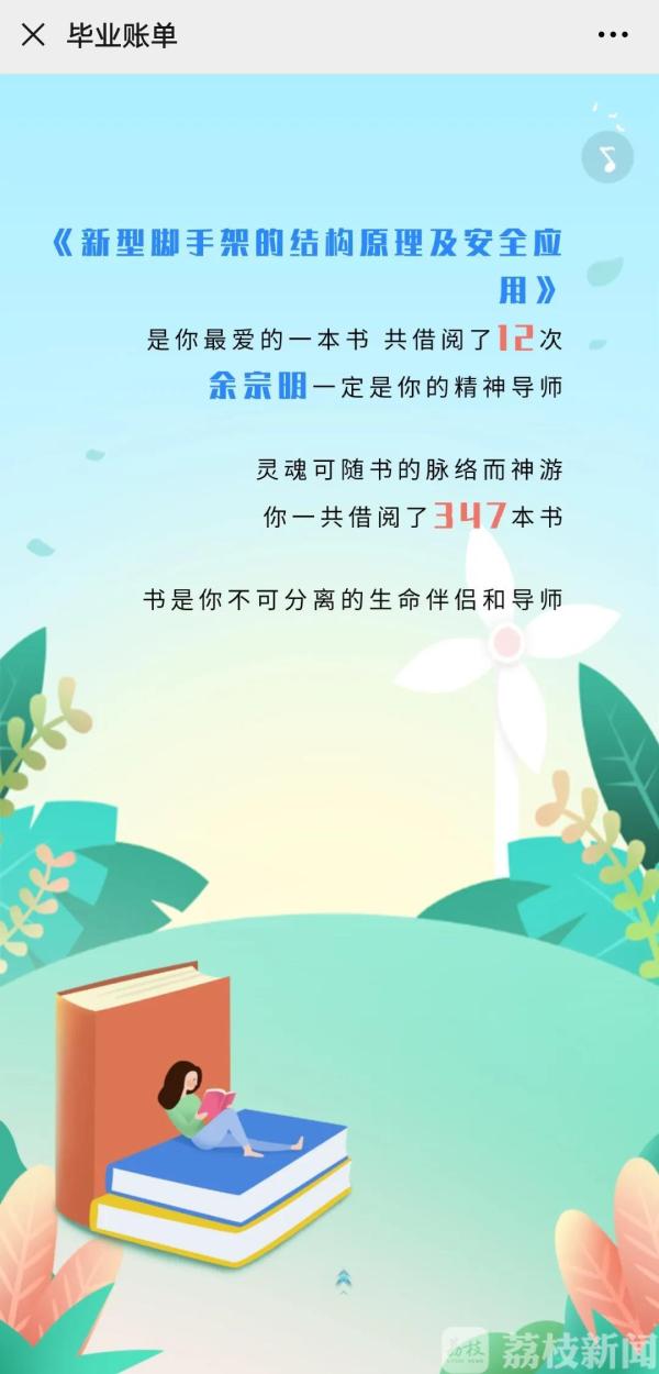 “我们学校考虑得太细致了,每人还量身定做了校园毕业账单,你看,就是类似于支付宝的年度账单,没想到学校从我们的学习、生活各个角度通过大数据分析得如此精确。”毕业生李卓,向记者展示了学校推送给每位毕业生的毕业账单。