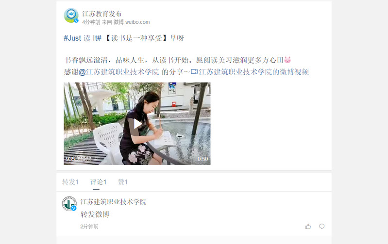 书香飘远溢清,品味人生,从读书开始。愿阅读美习滋润更多方心田感谢@江苏建筑职业技术学院 的分享!