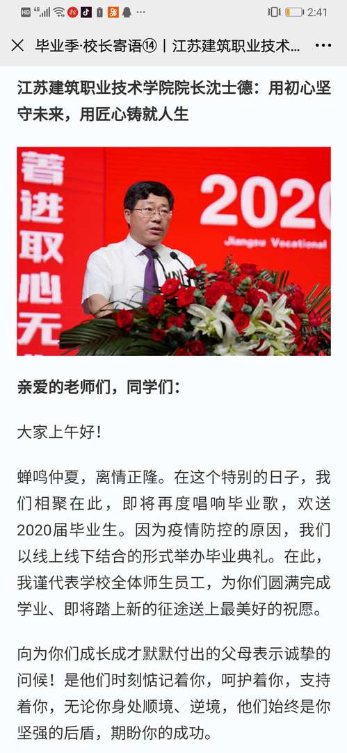 古人感叹:聚散苦匆匆,此恨无穷。天底下没有不散的筵席,但就母校之情、师生之谊而言,既然曾经拥有,必将天长地久!今天,你们带着新的身份——建院校友,带着母校的守望、老师的期望、同学的相望,即将百舸争流,搏击长空,成就自己出彩人生。无论你身处何地、心在何方,一定要记住,彭城南郊、泉山东麓,学苑路26号,一直在这里默默为你祈福、为你担忧、为你欢呼、为你守望!