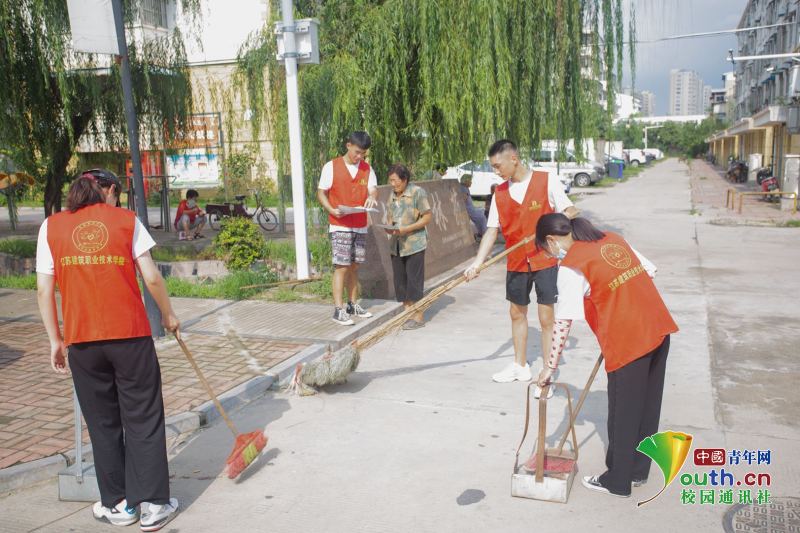 实践团成员在社区进行环境卫生治理。中国青年网通讯员 张世豪 摄