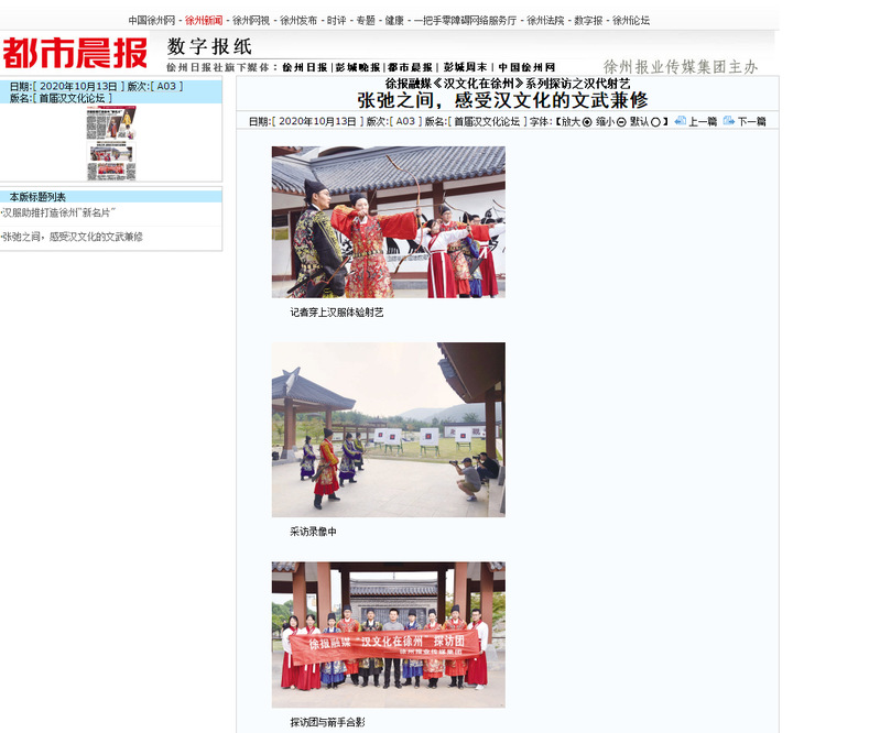 本报讯(徐报融媒记者 张瑾 见习记者 王强)“五行阵:举,引,射!鹤翼阵:举,引,射!巨龙阵:举,引,射!”9月26日下午,徐报融媒《汉文化在徐州》探访团来到江苏建筑职业技术学院的礼射场时,6名身着华丽古装的学生已经在张弓搭箭、操练阵型。据说,这样的训练对校礼射队队员来说,每天都要进行。