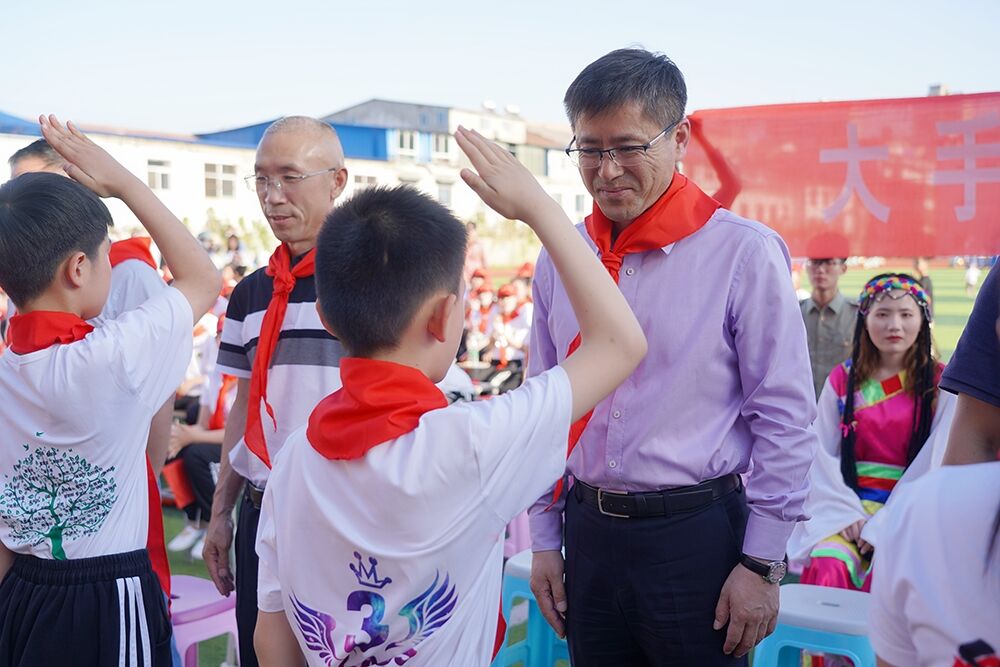 成长礼仪式上来自江苏建院的“大手”与江苏建院附小的“小手”互赠“红心”卡、红领巾,“大手拉小手,携手心向党”将活动推向高潮。