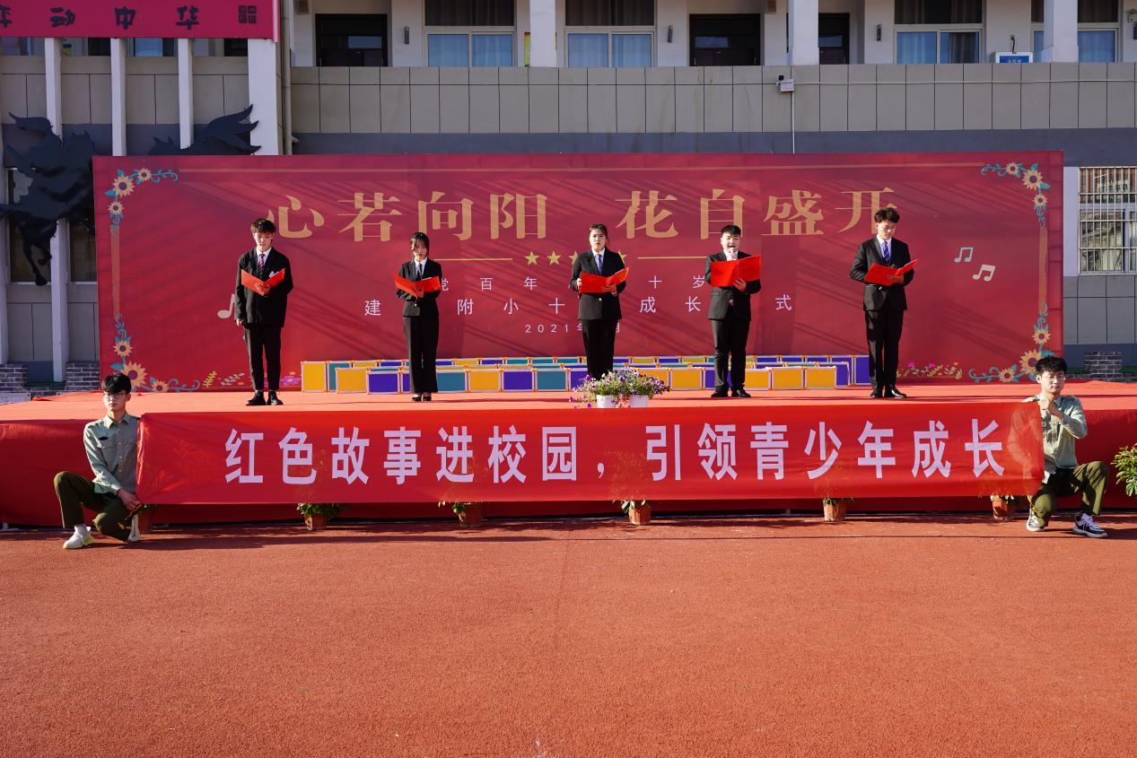 此次成长礼仪式大“礼包”是江苏建院智能制造学院党史学习教育“四进”的重要内容之一。在建党百年的特殊日子里,江苏建筑职业技术学院副院长曾凡远带领智能制造学院师生向江苏建院附小四年级学生成长礼仪式献礼,特殊的“红色礼包”必将在青少年的心灵中荡起不小的红色涟漪,引领他们赓续革命薪火,扣好人生第一粒扣子,也让江苏建院的党史学习教育更加走新走心。