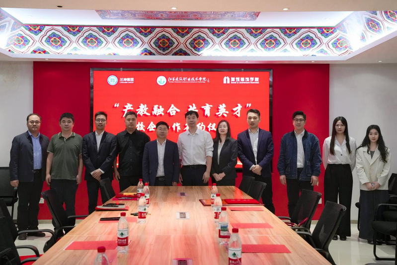 近日,我校建筑装饰学院与江苏兰坤控股集团有限公司举行合作签约暨“毕业生就业基地揭牌”仪式,党委副书记、校长沈士德,江苏兰坤控股集团有限公司董事长魏锋、人资总监苏坡、人资主管史梦姣、人资专员杨敏出席会议,校科技开发与对外合作处、学生工作处、招生与就业处、建筑装饰学院等部门负责人参加会议。会议由建筑装饰学院党总支副书记石峰主持。