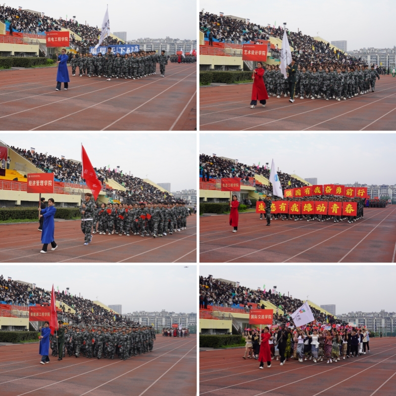 开幕式前,国旗队、彩旗队、裁判员及二级学院方队依次通过主席台。随后,全体人员庄重举行了升国旗仪式。校党委书记朱东风正式宣布第四十届体育运动会开幕。