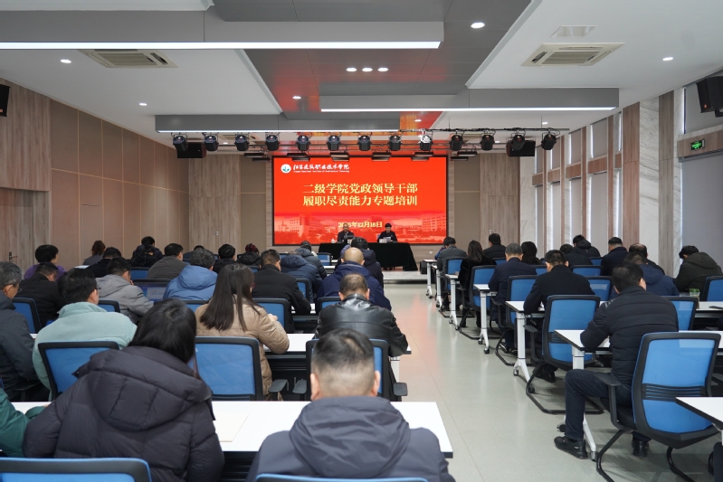 为深入学习贯彻党的二十大及历次全会精神,全面落实习近平总书记关于干部队伍建设的重要论述,切实提升二级学院党政领导干部的政治素养、治理能力与履职实效,12月16日,我校在科技园路演大厅举办二级学院党政领导干部履职尽责能力专题培训班,特邀苏州大学党委常委、副校长查佐明教授作专题讲座。校党委副书记梁惠,党委委员、党委组织部部长、党校常务副校长宋丹萍及各二级学院党政领导干部全程参训。培训班由梁惠主持。