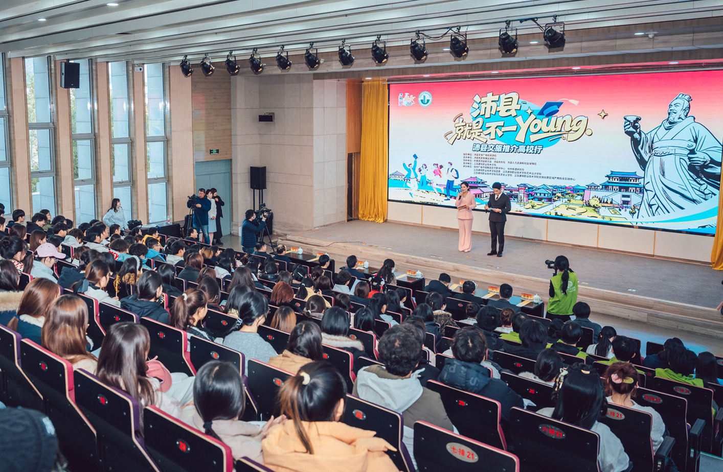 2025年12月26日,由沛县文旅局、徐州市广电传媒集团与我校艺术设计学院联合主办的“沛县,就是不一Young”沛县文旅推介高校行在我校图书馆报告厅举行。校党委副书记梁惠出席并致辞。徐州市文化广电和旅游局四级调研员盛建利、沛县人民政府副县长李晓青、沛县文体广电和旅游局党委书记陈静、徐州广电传媒集团副台长卞海峰,以及我校党委宣传部、团委等部门负责人参加活动。艺术设计学院师生代表作为主办方一同参会。