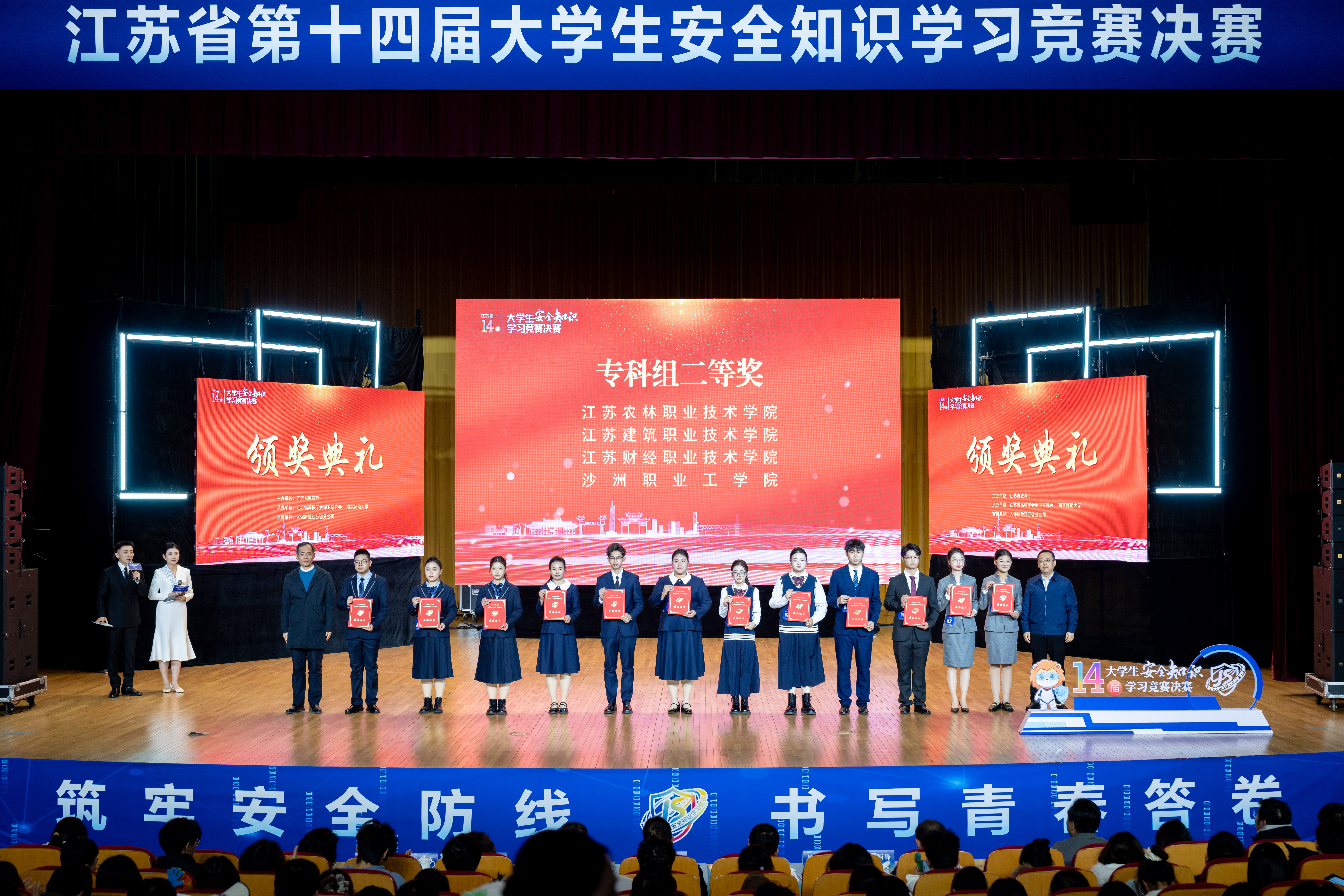 12月28日,由江苏省教育厅主办,江苏省高教学会保卫研究会、南京师范大学承办的江苏省第十四届大学生安全知识学习竞赛决赛落下帷幕。作为全省大学生安全知识领域的重要赛事,本届竞赛自10月下旬启动以来,覆盖全省80多万名本科、专科和五年制高职新生,经过校内选拔赛、初赛、复赛三轮严苛比拼,最终中职组、专科组、本科组各选拔出6支代表队晋级决赛。