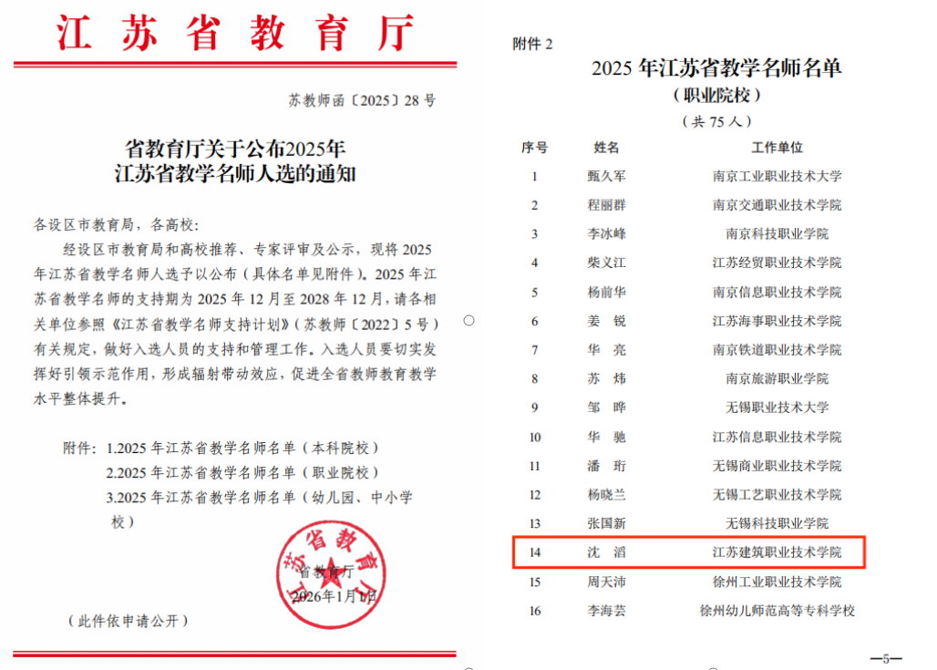 据悉,江苏省教学名师评选是省教育厅为深入贯彻落实习近平总书记关于教育的重要论述及新时代人才工作部署,着力打造高素质、专业化、创新型教师队伍的重要高层次人才支持项目。该计划旨在表彰长期坚守教学一线、育人成果显著、教学改革突出的优秀教师。