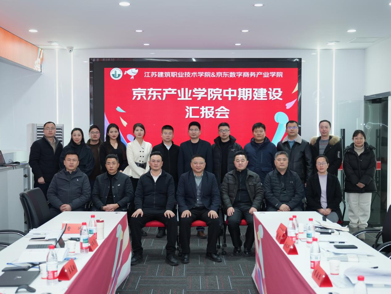 1月22日下午,江苏建筑职业技术学院京东数字商务产业学院中期建设汇报会在第二实训楼会议室召开。校党委委员、副校长蒋兆峰,江苏省现代物流协会秘书长孙雷,京东科技产教融合交付负责人袁晨皓,博迅集团副总裁、迅龙航空总经理徐天俊出席会议。学校教务处、科技开发与对外合作处、资产经营公司等部门负责人,经济管理学院班子全体成员、教研室主任、教师代表参加会议,会议由经济管理学院党总支书记李国琴主持。