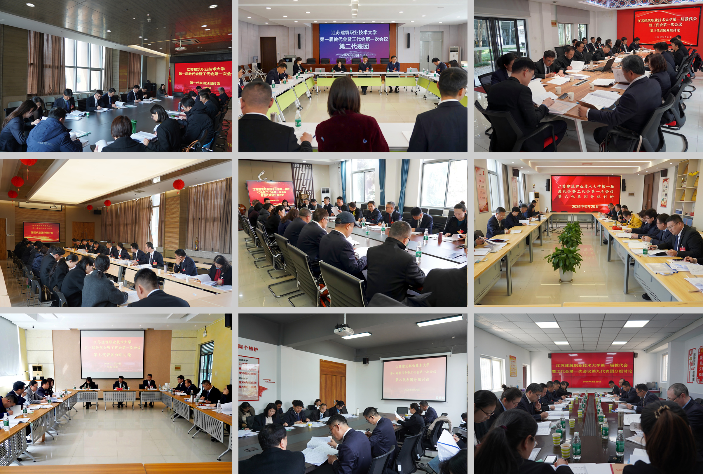 会议期间,全体代表分为九个代表团重点围绕学校工作报告、财务工作报告、《江苏建筑职业技术大学章程(草案)》《“十五五”事业发展规划(草案)》《岗位设置与聘用实施办法》《教职工年度考核办法(试行)》《关于支持湖西校区办学的若干举措(修订)》及工会工作报告等进行认真而热烈的讨论。