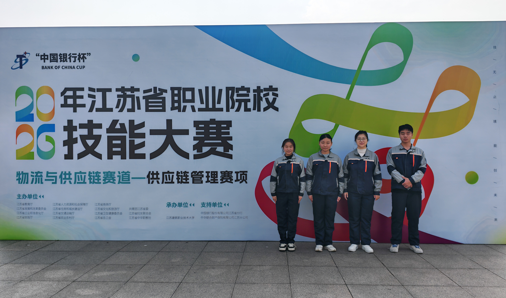 3月30日至4月1日,由江苏省教育厅、江苏省发展和改革委员会、江苏省工业和信息化厅等多部门联合主办,我校承办的2026年江苏省职业院校技能大赛物流与供应链赛道·供应链管理项目顺利举行。该项目吸引了全省41所高职院校的164名选手同台竞技、比拼技能。其中,我校经济管理学院现代物流管理专业选派的由宋倩倩、朱佳慧、李名佚、林祖儿四名同学组成的参赛团队,凭借出色发挥,最终以总分第一名的成绩荣获一等奖。