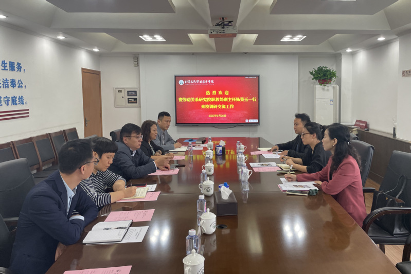 9月26日上午,江苏省劳动关系研究院职教处副主任杨昊玉、信息处负责人张干、徐州市总工会张书辰主任一行三人来我校就徐州工匠学院建设情况开展调研。党委委员、副校长朱铁壁出席活动,学校工会、资产经营公司、智能制造学院等相关部门负责人参加调研。