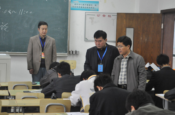 省、市领导高度重视此次考试,江苏省工程造价管理总站处长马恒群,徐州市建设局局长等主要领导及分管领导亲临我校进行督察工作,我校副院长季翔、张登宏、沈士德分别对考场进行巡查,指导考务工作。