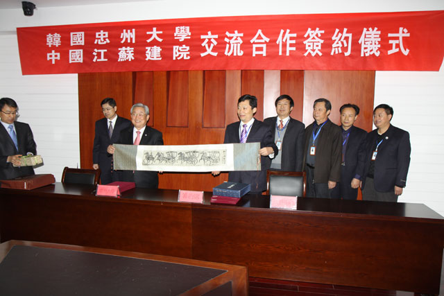 吴光林院长对张炳辑校长来访表示热烈的欢迎,并介绍了我校的基本情况,双方在开展学生、教师间交流、教学与科研合作等方面进行了深入探讨,达成了良好的合作意向。我校优美的校园环境、“集成化”的建筑技术馆等给张炳辑校长留下了深刻的印象,张炳辑校长诚挚邀请吴院长访问忠州大学。