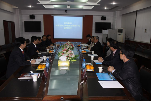 10月27日下午,韩国忠州大学张炳辑校长一行6人来我校参观访问,吴光林院长热情接待了客人。
