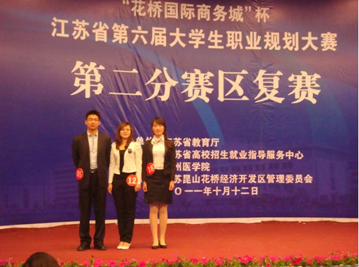 近日,江苏省第六届大学生职业规划大赛第二分赛区复赛在徐州医学院落下帷幕。本次大赛由江苏省教育厅主办、省高校招生就业指导服务中心和徐州医学院承办,经过层层选拔,来自分赛区7个专科院校的18名选手参加了复赛,经过个人陈述、评委提问、才艺展示等环节的激烈角逐,我校选派的赵爽爽、王新飞、臧阳三位同学分别获得第二名、第三名、第四名。