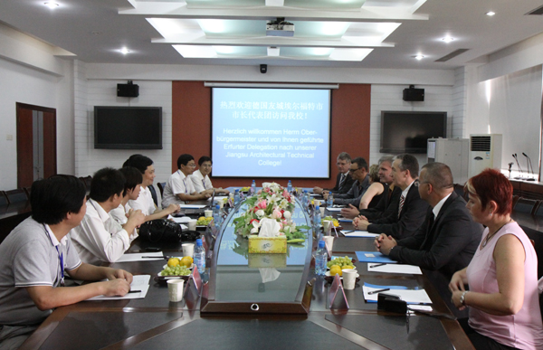 9月14日下午,我校建筑技术馆第一次迎来了外国友人,德国友城埃尔福特市市长安德里亚斯·鲍瑟威一行7人来我校参观访问。优美的校园环境、“集成化”的建筑技术馆给安德里亚斯·鲍瑟威市长一行留下了深刻的印象。