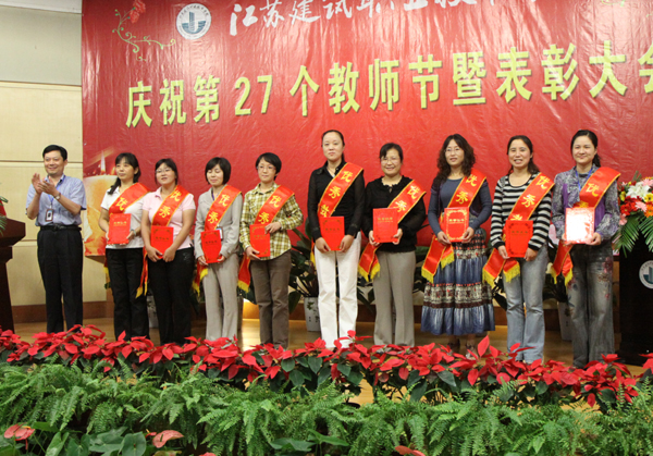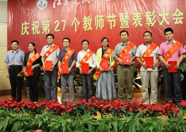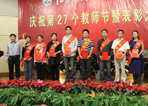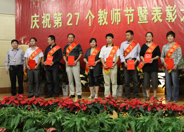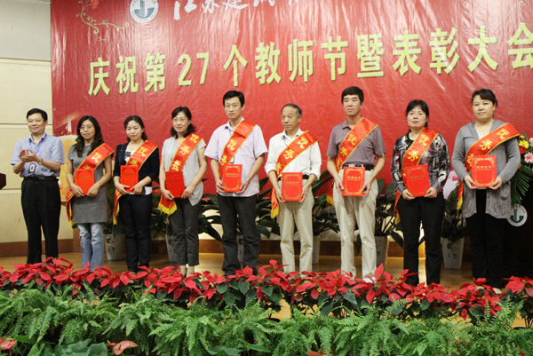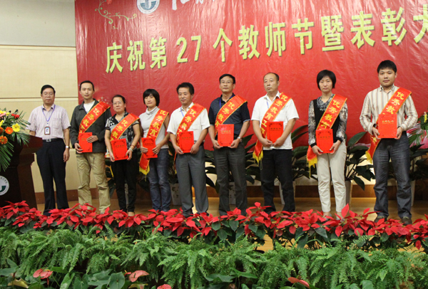 吴光林为优秀教师颁奖 吴光林为优秀教师颁奖 任留钦为优秀教育工作者颁奖 任留钦为优秀教育工作者颁奖 张登宏为优秀辅导员颁奖 张登宏为优秀辅导员颁奖 沈士德为优秀兼职教师颁奖 吴光林发表重要讲话 任留钦宣读表彰决定 季翔主持表彰大会 武荣权老师发言 孙武老师发言 黄梅老师发言 王彬馨同学向教师节献词 全体校领导、师生代表参加了表彰大会