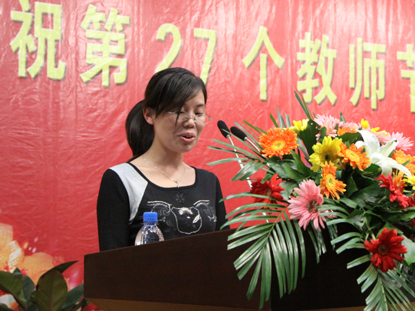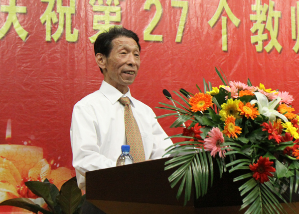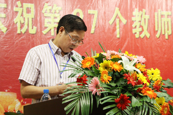 从事教育工作满五十周年的武荣权老师、优秀教师代表建工学院孙武老师、优秀辅导员代表设备学院黄梅老师分别发言。学生代表经济管理学院王彬馨同学向教师节献词。