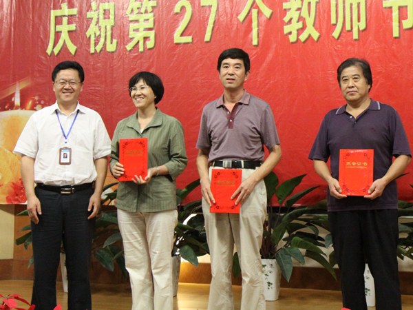 会上,袁洪志为从事教育工作已满三十周年的市政学院刘家春教授、张子贤教授和机关李宝峰同志,以及已满五十年教龄的武荣权老师颁发荣誉证书。任留钦宣读表彰决定,在热烈的掌声中,吴光林、任留钦、张登宏、沈士德分别为戚豹等27名优秀教师、高红等17名优秀教育工作者、米珍等17名优秀辅导员、史峰等3名优秀兼职教师颁奖。