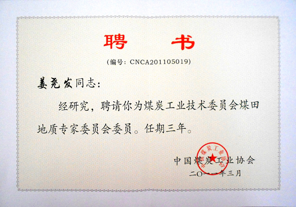 近日,江苏省教育厅给我校寄来聘书,我校建筑设计学院姜尧发教授被中国煤炭工业协会(原煤炭工业部)聘请为煤炭工业技术委员会煤田地质专家委员会委员。