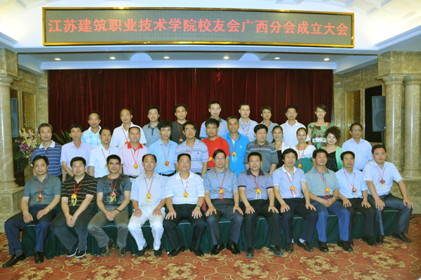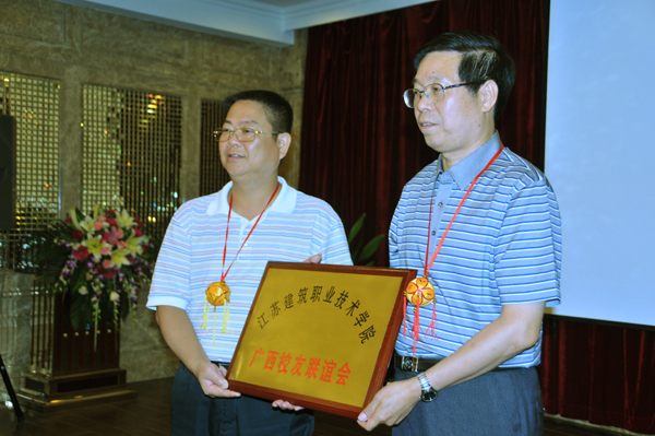 广西校友用浓厚的壮族风情点缀着整个会场,会议始终在欢快喜庆的气氛中进行。会议播放了学校专题片,宣读了我校校友联谊会《关于同意成立江苏建筑职业技术学院校友联谊会广西分会的批复》,选举产生了广西校分会会长、常务副会长、副会长、秘书长、副秘书长等人选,举行了广西校友分会揭牌仪式,新当选的会长毕业于矿建81-3班、现任广西右江矿务局党委书记、局长叶仿拥代表广西校友作了热情洋溢的发言,任留钦副院长代表学校校友联谊会对广西校友分会的成立表示祝贺,对广西校友的热情参与和支持表示感谢,并祝愿广西校友分会在新任会长的带领下,团结各位校友,为母校和广西地区的建设与发展,为祖国的繁荣昌盛做出自己的贡献。