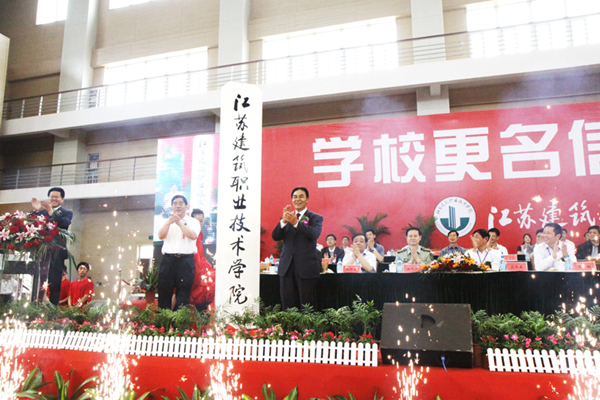 今年年初,经江苏省人民政府批准,徐州建筑职业技术学院更名为“江苏建筑职业技术学院”。为庆祝学校更名成功,住建部人事司、省住建厅以及全国建筑类高职院校纷纷发来了贺信和贺电。来自友好合作企业、在徐兄弟学校领导、徐州市有关党政机关、区(县)领导、江苏省部分市、县教育行政部门和中学来宾,友好合作的各类大型企业以及学校原校级老领导、离退休老教师、在职教职工和学生代表约3000人参加了大会。