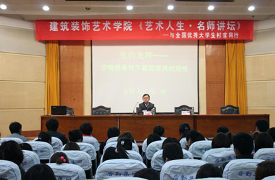 326,建筑装饰艺术学院邀请全国优秀大学生村官张弛与该院近400名学子面对面进行了深入交流。张弛结合自身的工作经历阐述了作为一名基层党员应有的党性,朴实地讲述了他在农村岗位上锻炼成长的历程,在艰苦创业、带领群众致富路上经历的酸甜苦辣,多角度与学生分享了“大学生村官”的别样生活,在大学生中引起强烈反响。大家认为,“大学生村官”们的经历让人深受教育,给人启发和鼓舞,只要立志成事,扎实从基层做起,必将大有作为。