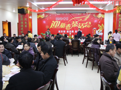 1月16日晚,我校招待餐厅张灯结彩,喜气洋洋,学校以“话友谊,谋发展,促和谐”为主题的2011年迎新春茶话会在这里举行。校领导袁洪志、吴光林、季翔、任留钦、张登宏,全体中层干部,具有正高职称的专家教授,博士,国家级、省级、校级“教学名师”,省“333”工程人才培养对象,市、区人大代表、政协委员,民主党派负责人,无党派人士代表,新一届教代会正式代表、列席代表、特邀代表200余人欢聚一堂。