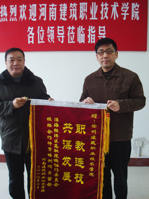 1月7日上午,河南建筑职业技术学院党委副书记刘存龙带队来我校考察交流,就师资队伍建设、专业课程建设等相关工作进行调研,并向我校赠送锦旗和感谢信,对去年暑期我校为该校培训师资表示感谢。副院长季翔及相关职能部门、二级学院负责人参加了交流会。